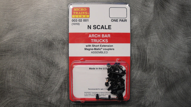 00302001 MICRO TRAINS / 003 02 001 ARCH BAR TRUCKS - SHORT EXT CPLRS (1010) (SCALE=N) is backordered and will ship as soon as it is back in stock.