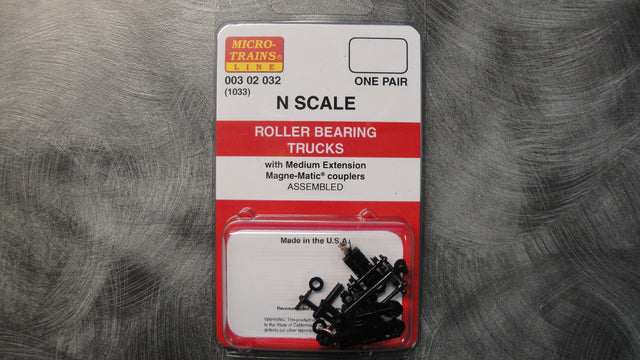 00302032 MICRO TRAINS / 003 02 032 ROLLER BEARING TRUCKS (1033) (SCALE=N) is backordered and will ship as soon as it is back in stock.