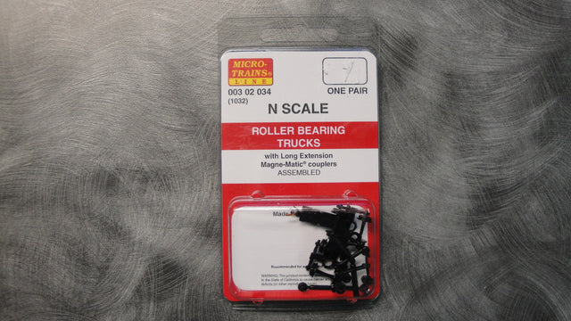 00302034 MICRO TRAINS / 003 02 034 ROLLER BEARING TRUCKS (1032) (SCALE=N) is backordered and will ship as soon as it is back in stock.
