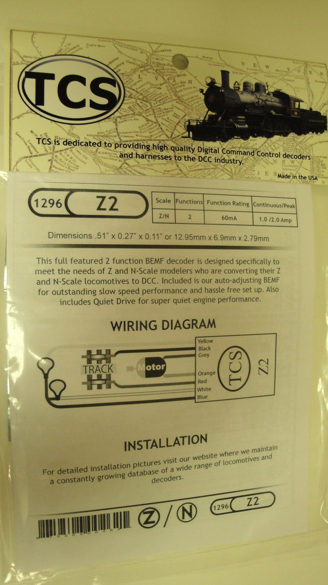 1296 Train Control System / Z2 Decoder Tiny 2 function decoder (Scale = Z ; ALL) Part # 745-1296 is backordered and will ship as soon as it is back in stock.