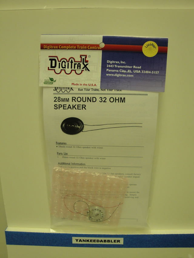 Digitrax SP282832 28mm 32 Ohm Round Speaker w/Wire; All Scales is backordered and will ship as soon as it is back in stock.
