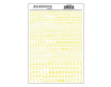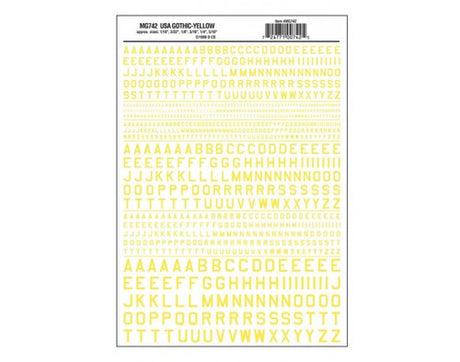 Woodland Scenics 742 Dry Transfer Alphabet - 45 Degree USA Gothic (Military Style) -- Yellow A Scale