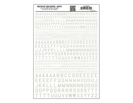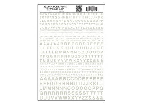 Woodland Scenics 721 Dry Transfer Alphabet & Numbers - Railroad Gothic -- White A Scale