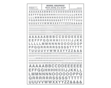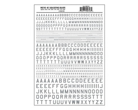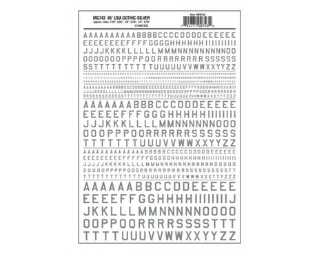 Woodland Scenics 725 Dry Transfer Alphabet & Numbers - Railroad Gothic -- Silver A Scale
