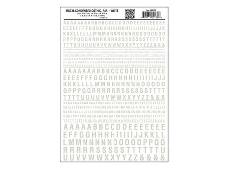 Woodland Scenics 738 Dry Transfer Alphabet & Numbers - Condensed Railroad Gothic -- White A Scale