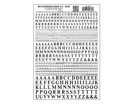 Woodland Scenics 718 Dry Transfer Alphabet & Numbers - Condensed Railroad Roman -- Black A Scale