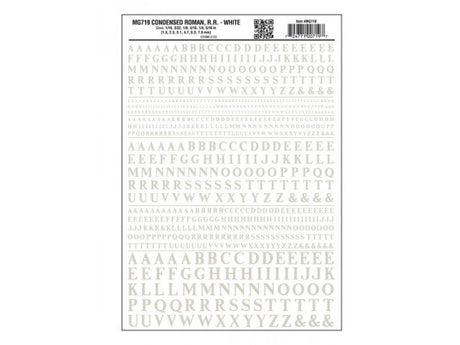 Woodland Scenics 719 Dry Transfer Alphabet & Numbers - Condensed Railroad Roman -- White A Scale
