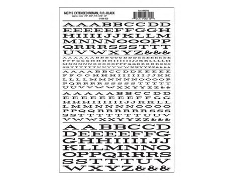 Woodland Scenics 715 Dry Transfer Alphabet & Numbers - Extended Railroad Roman -- Black A Scale