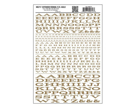 Woodland Scenics 717 Dry Transfer Alphabet & Numbers - Extended Railroad Roman -- Gold A Scale