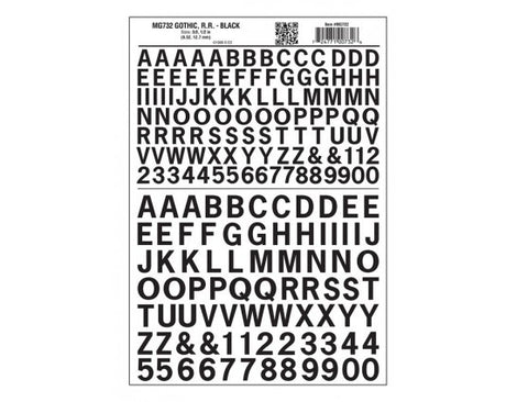 Woodland Scenics 734 Dry Transfer Alphabet & Numbers - Extended Railroad Gothic -- Black A Scale