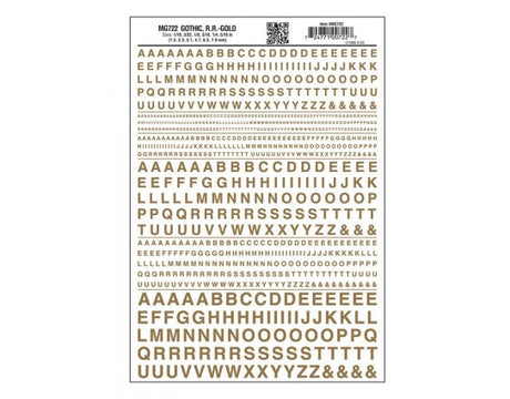 Woodland Scenics 722 Dry Transfer Alphabet & Numbers - Railroad Gothic -- Gold A Scale