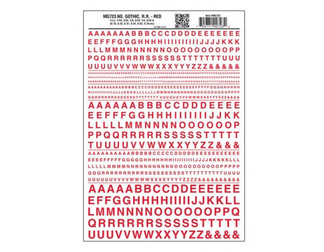 Woodland Scenics 723 Dry Transfer Alphabet & Numbers - Railroad Gothic -- Red A Scale