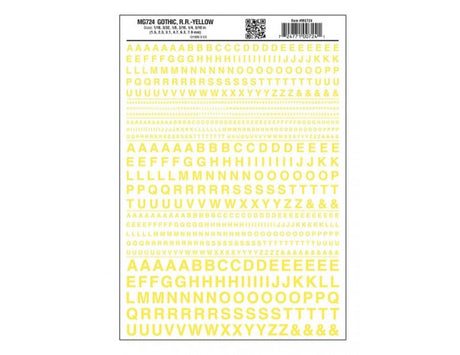 Woodland Scenics 724 Dry Transfer Alphabet & Numbers - Railroad Gothic -- Yellow A Scale