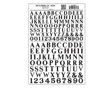 Woodland Scenics 713 Dry Transfer Alphabet & Numbers - Railroad Roman (3/8 & 1/2") -- Black A Scale