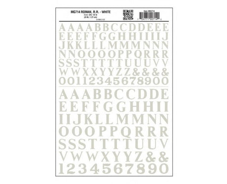 Woodland Scenics 714 Dry Transfer Alphabet & Numbers - Railroad Roman (3/8 & 1/2") -- White A Scale