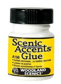Scenic Accents Glue is specially formulated for instant placement of figures with no holding required and allows for easy repositioning.
